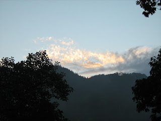 Beautiful sky picture. Love seeing the colors and clouds above that big mountain.